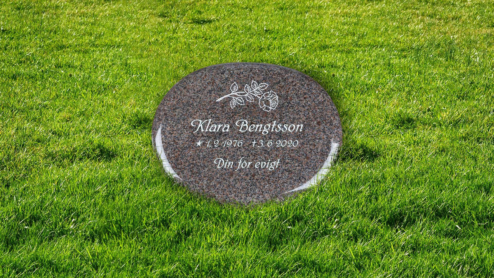 Liggande sten med mjukt rundad form.- Modell: Liggande