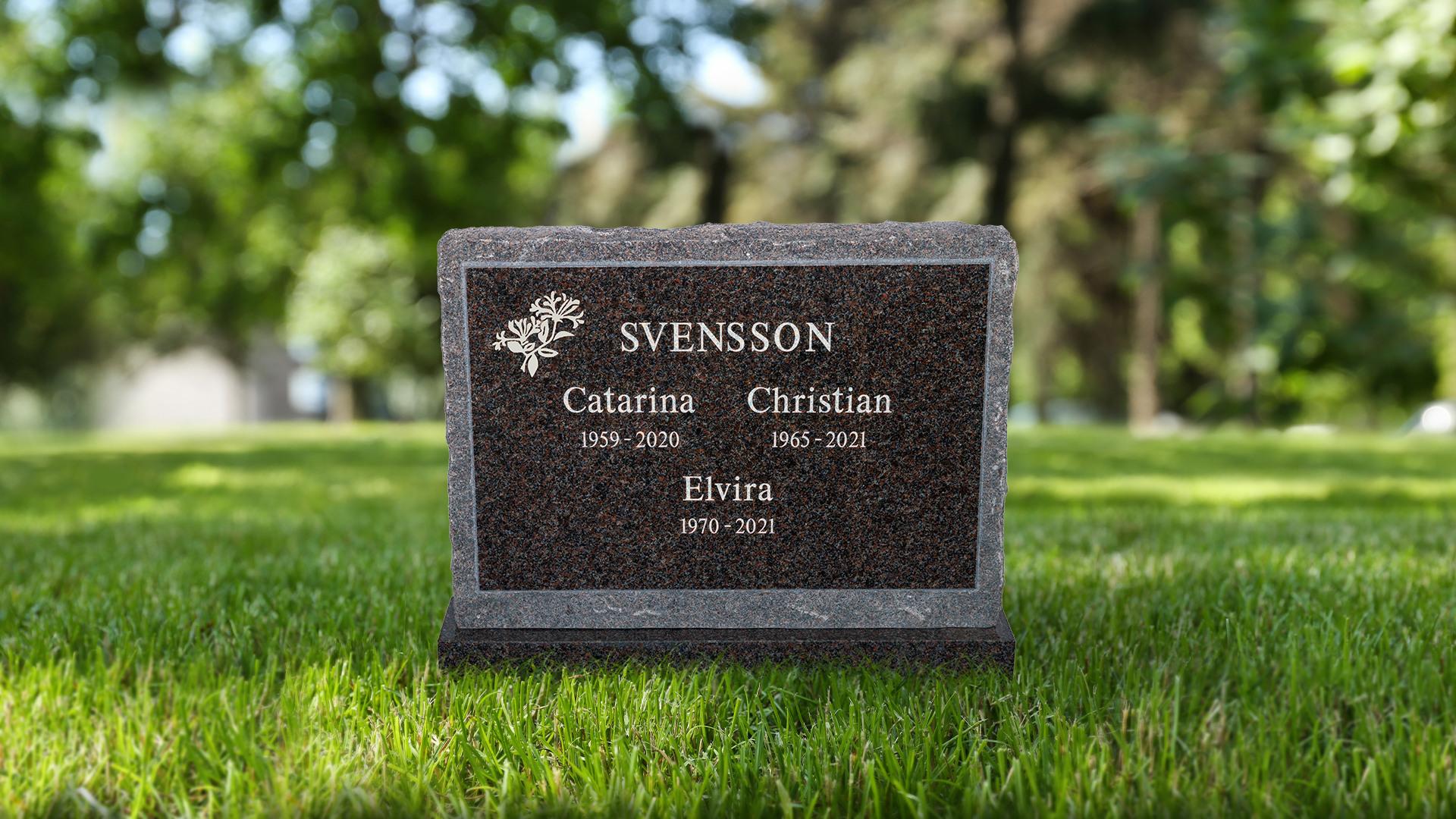 Stående sten i klassisk rektangulär form med råhuggen ram.