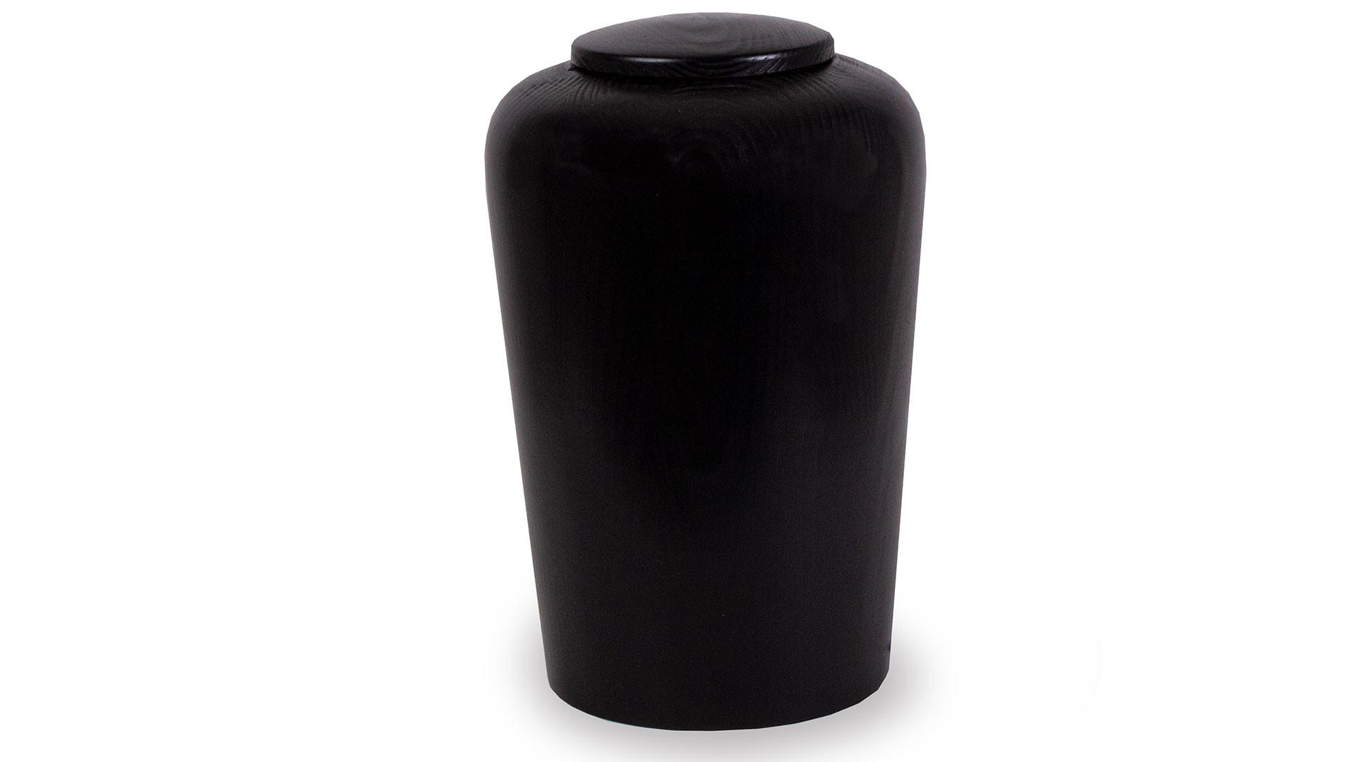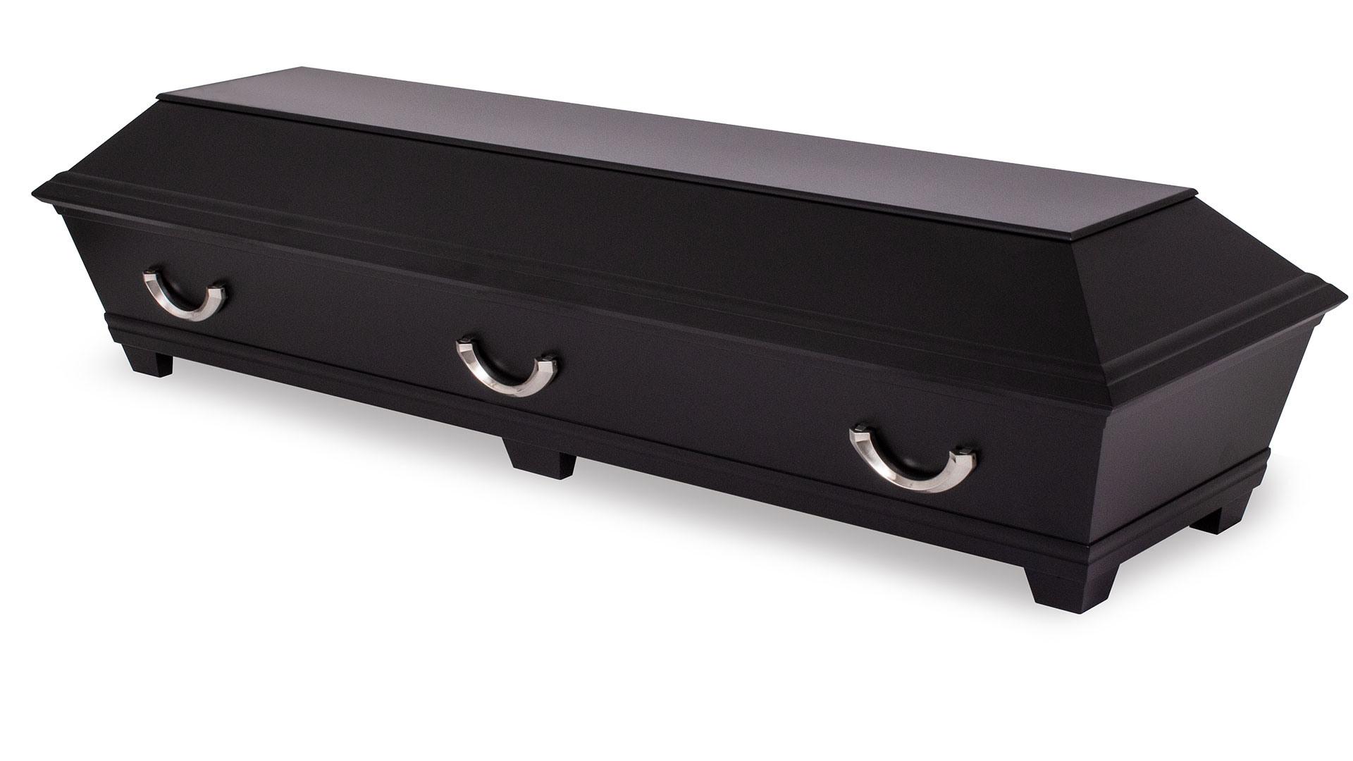 Elegant är en urna tillverkad av massiv furu och är 100% nedbrytbar. Denna variant är målad i svart. Urnan är förgänglig och lämplig för gravsättning. Levereras med sänkband.