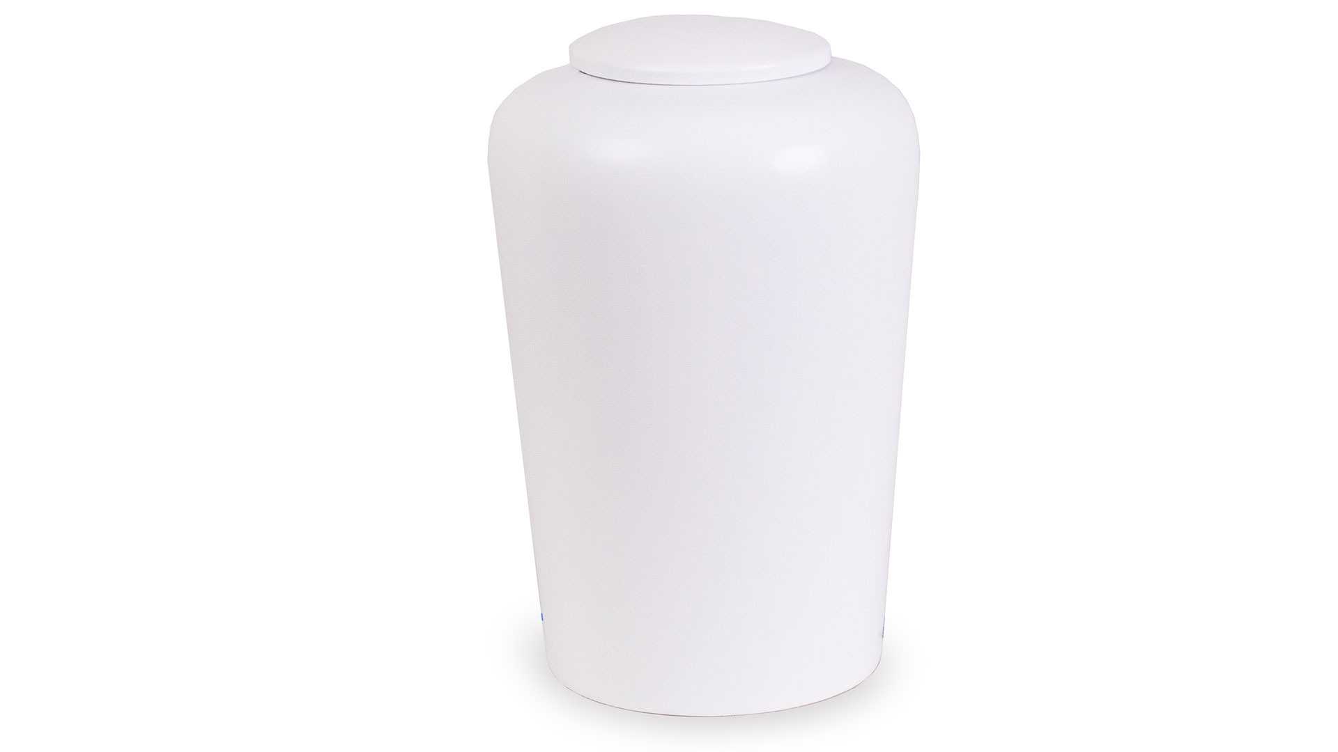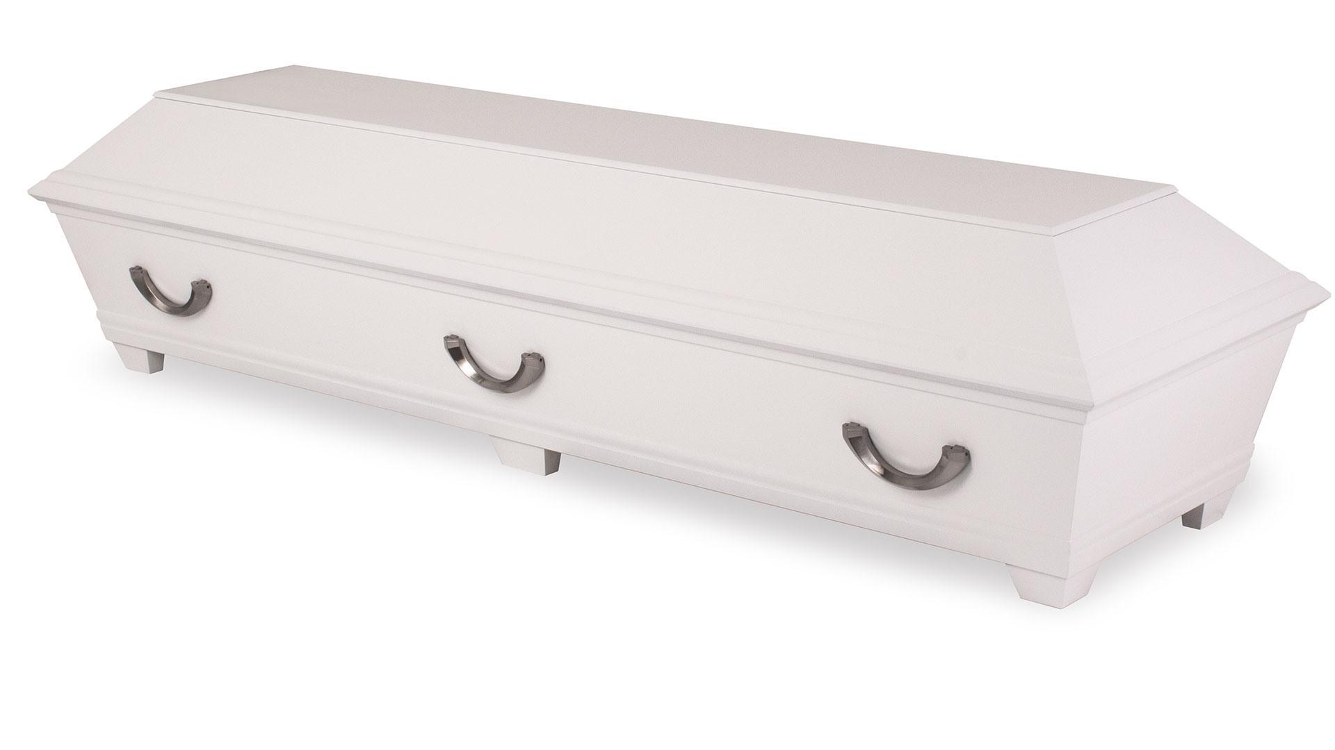 Elegant är en urna tillverkad av massiv furu och är 100% nedbrytbar. Denna variant är målad i vitt. Urnan är förgänglig och lämplig för gravsättning. Levereras med sänkband.