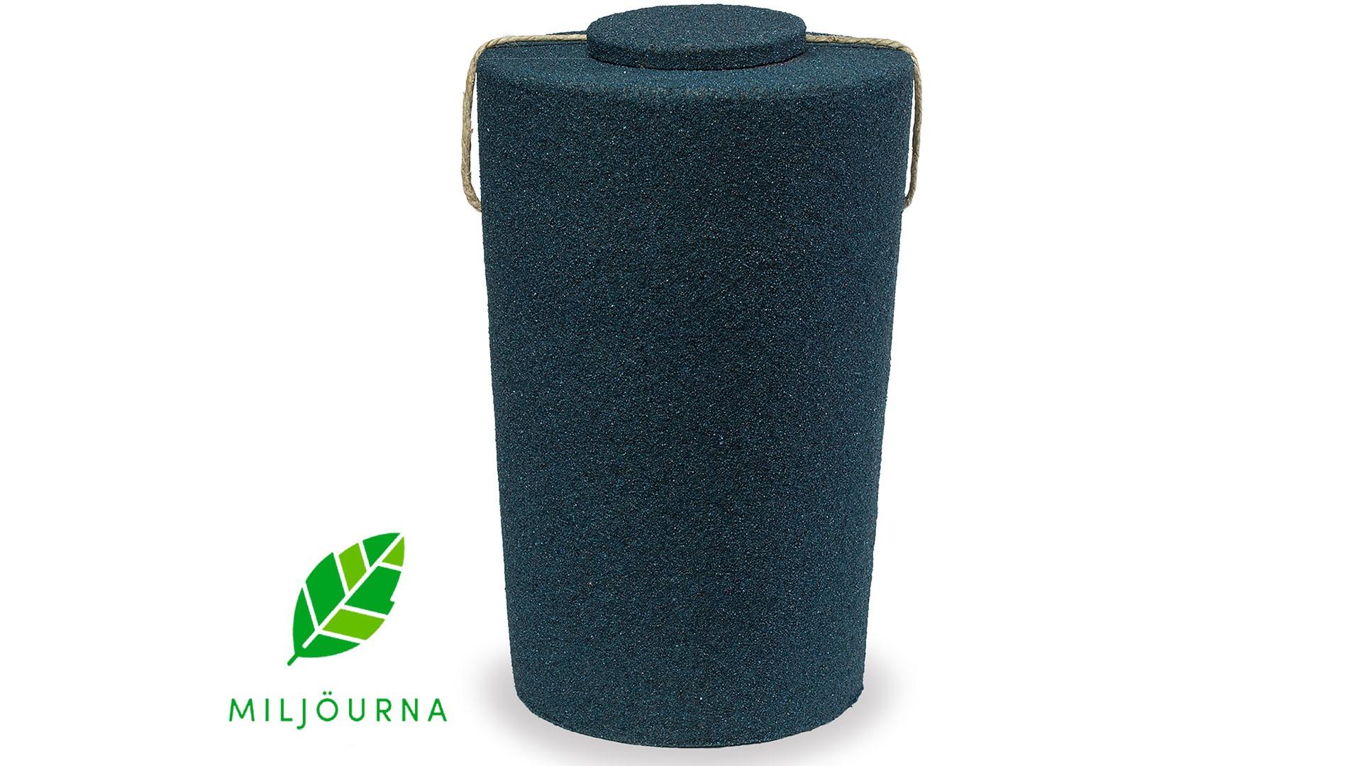 Urna av sand från vår svenska kust. Denna variant har en konisk form och är målad i en blå kulör. Urnan är förgänglig och är speciellt framtagen för spridning i vatten men är även lämplig för gravsättning i jord. Levereras med sänkband.