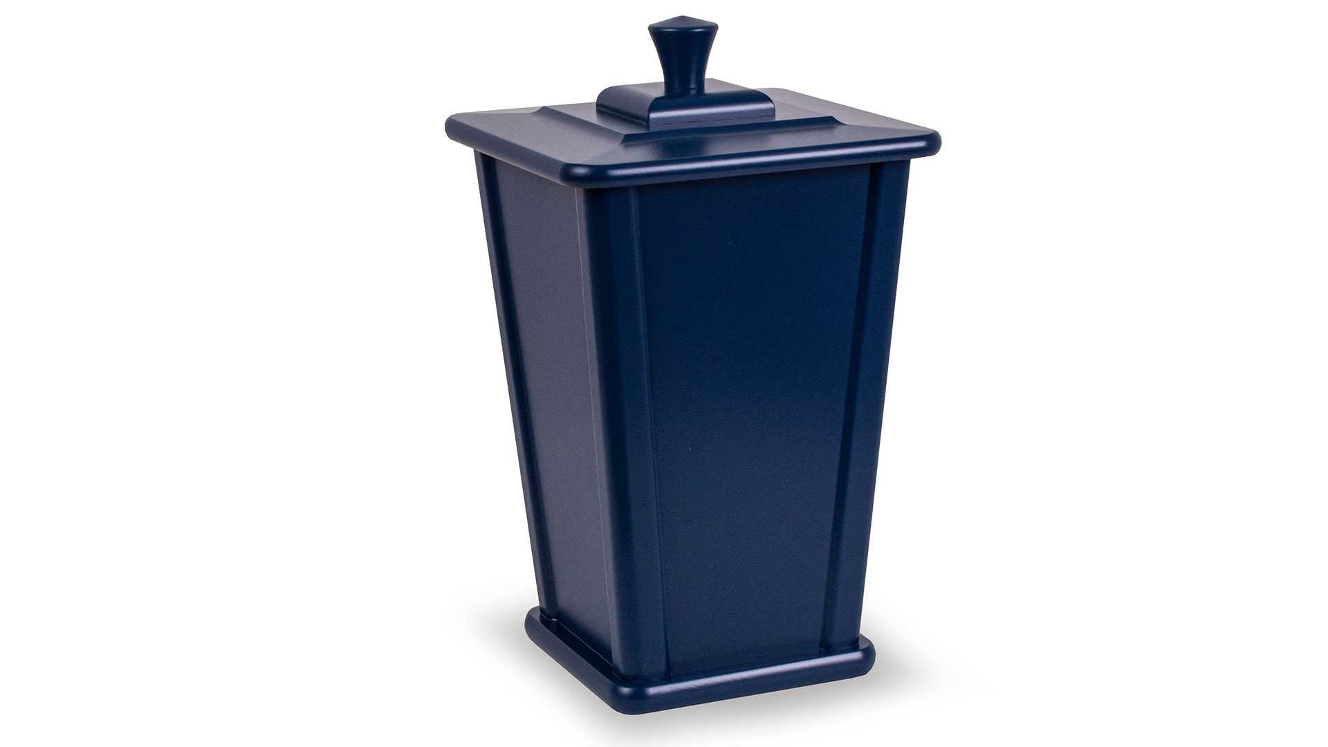 Tradition är en urna tillverkad av massivt och fanerat ekträ och är 100% nedbrytbar. Denna variant är målad i en mörkblå kulör. Urnan är förgänglig och lämplig för gravsättning. Levereras med sänkband.