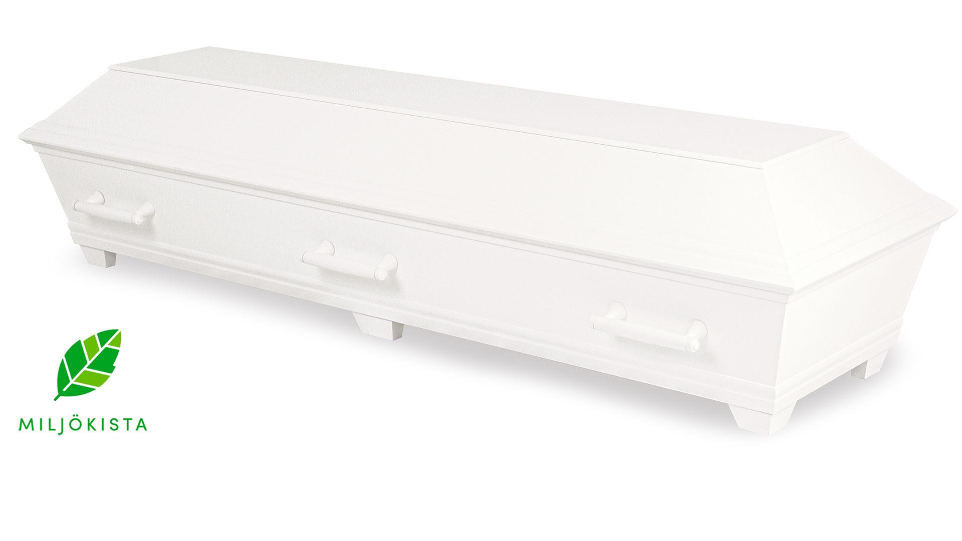 Tradition är en urna tillverkad av massivt och fanerat ekträ och är 100% nedbrytbar. Denna variant är målad i vitt. Urnan är förgänglig och lämplig för gravsättning. Levereras med sänkband.