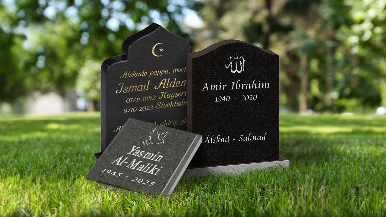 I vårt sortiment finns flera exempelstenar som är av mer religiös karaktär, exempelvis en muslimsk gravsten eller ortodox gravsten. Det kan vara att stenen har formen eller symboler som föreställer ett ortodoxt kors eller en kupol, religiösa inskriptioner, stenar med pelare på sidan eller gravramar av olika slag. Utländsk text och tecken är också vanligt och även foto på den avlidna.